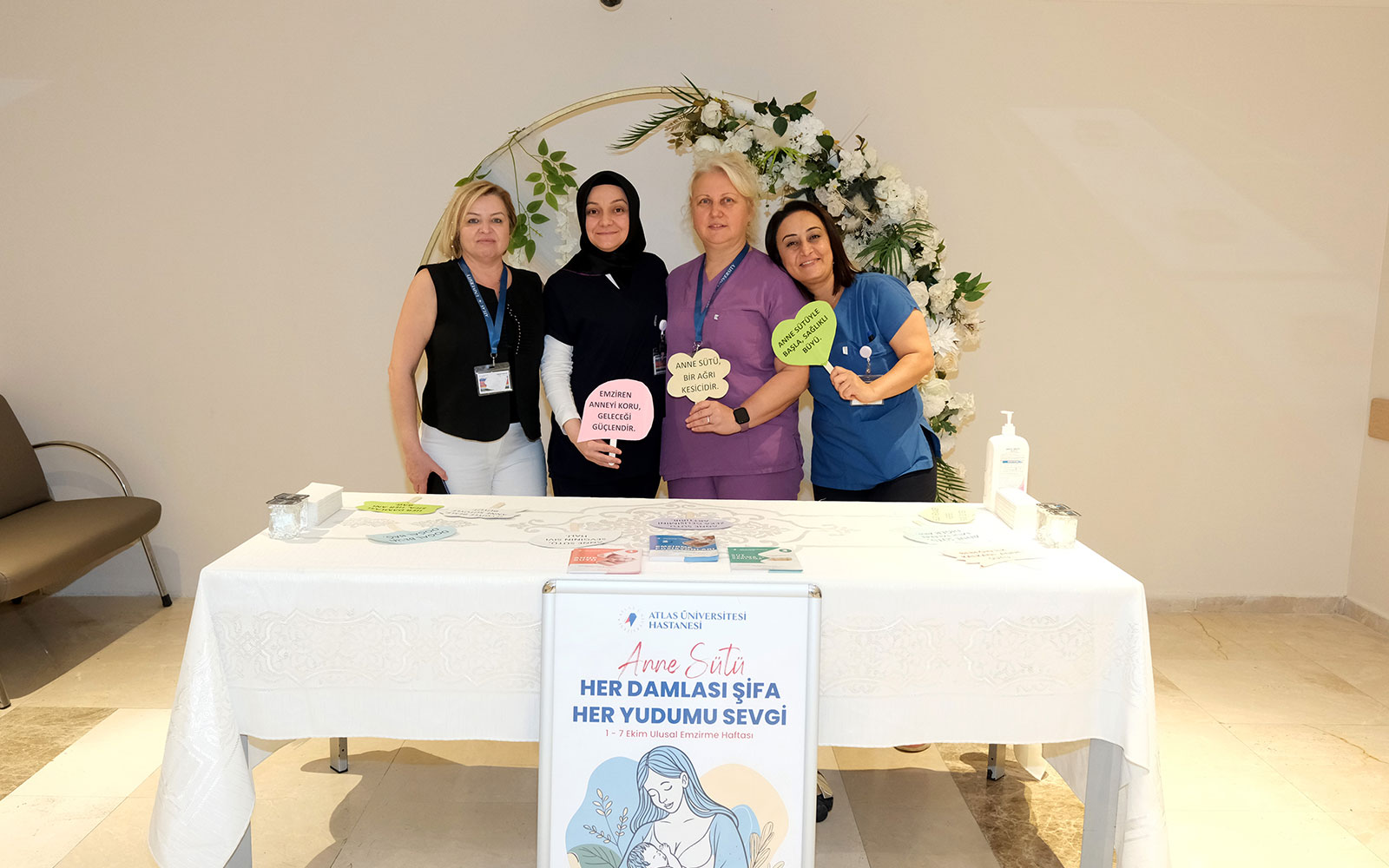 1-7 Ekim Ulusal Emzirme Haftası kapsamında, Atlas Üniversitesi Hastanesi olarak anne ve anne adaylarını bilinçlendirmek ve emzirme farkındalığını artırmak amacıyla özel bir stant açtık. Hastane bünyesinde düzenlenen etkinlikte, uzman doktorlarımız ve deneyimli sağlık personelimiz, ziyaretçilere kapsamlı eğitimler verdik.